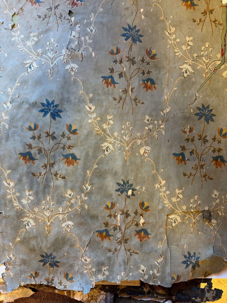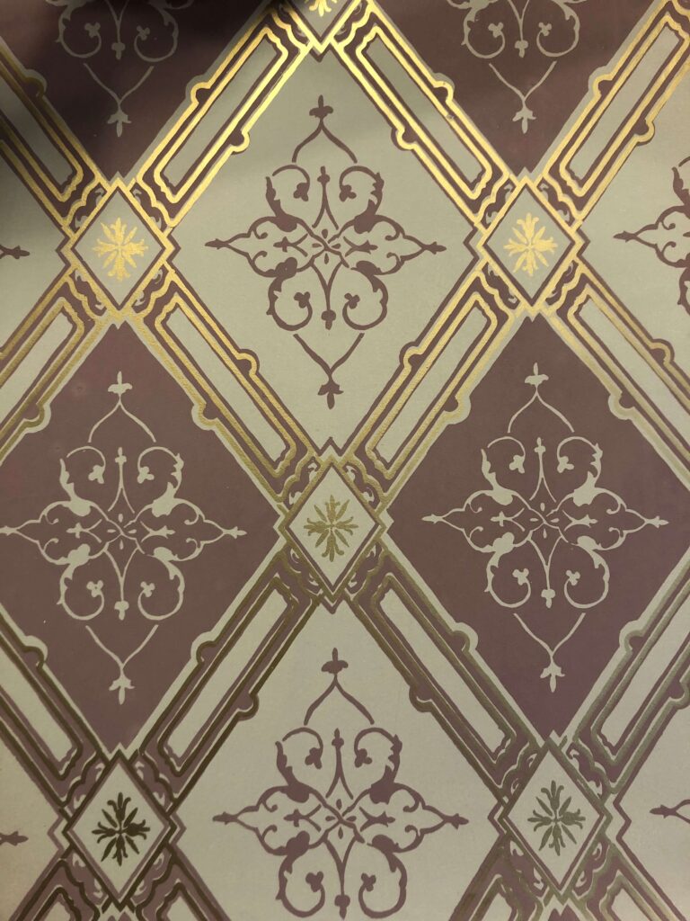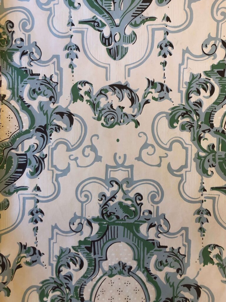Tapetborder langs taket var fortsatt svært utbredt, mange trykket med velur. De er mindre monumentale enn i empiren, men fortsatt rike, forseggjorte og fargesterke – som en ramme rundt rommets sceniske vegger.