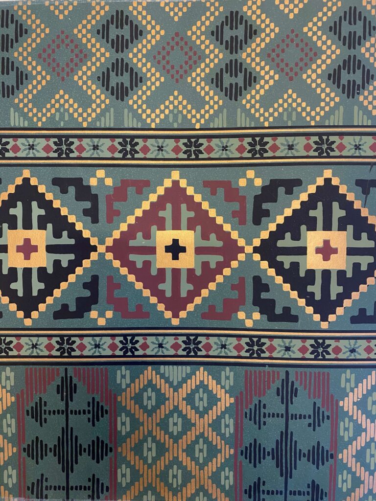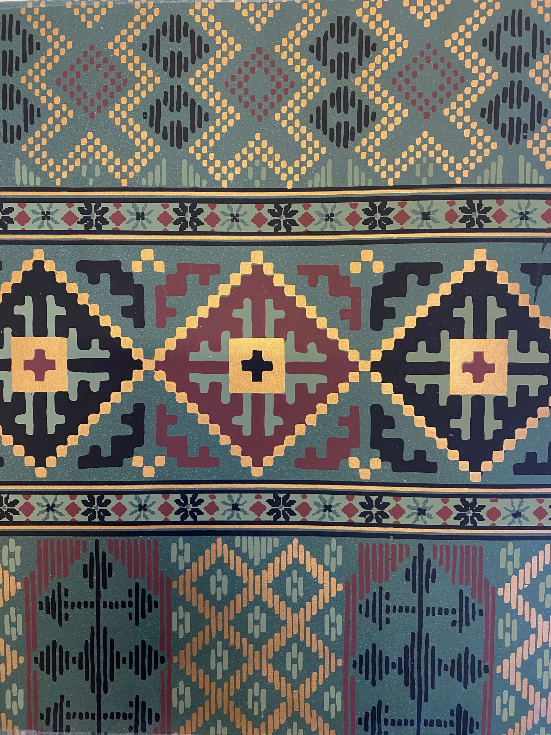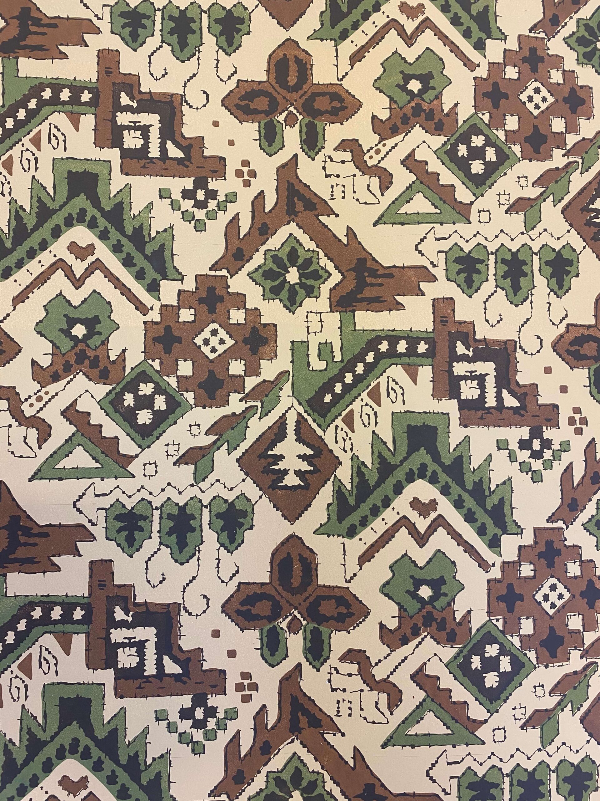 Art deco representerer en mer moderne og stilisert retning. Naturalistiske blomster forekommer fortsatt, men formspråket er strammere og mer geometrisk. Fargene er ofte sterke, klare og til tider mørke – brukt med bevisst kontrast og dekorativ kraft.